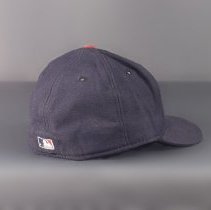 Une casquette bleu foncé des Twins du Minnesota, avec un bouton rouge. Sur le front de la casquette, on trouve la lettre « M ». Le derrière de la casquette contient un écrusson du logo de la MLB en blanc, bleu foncé et rouge. L'intérieur de casquette contient un bandeau blanc, où il y a trois écrussons. Le premier est un écrusson qui dit « MLB Authentic Official On Field Performance Collection » (une casquette officielle de la MLB de leur collection de performance sur le terrain). Le deuxième écrusson présente le logo de « New Era », puis le troisième montre la taille de 7,5. Le bord de la casquette est gris et Justin Morneau l’a autographié en feutre noir. Morneau a auusi écrit la date « August 9, 2006 » (le 9 aôut 2006) et l’importance « 30th HR » (trentième circuit). Le numéro que Morneau a porté était "33" et il a écrit ce numéro deux fois au-dessus du bord en feutre noir. |